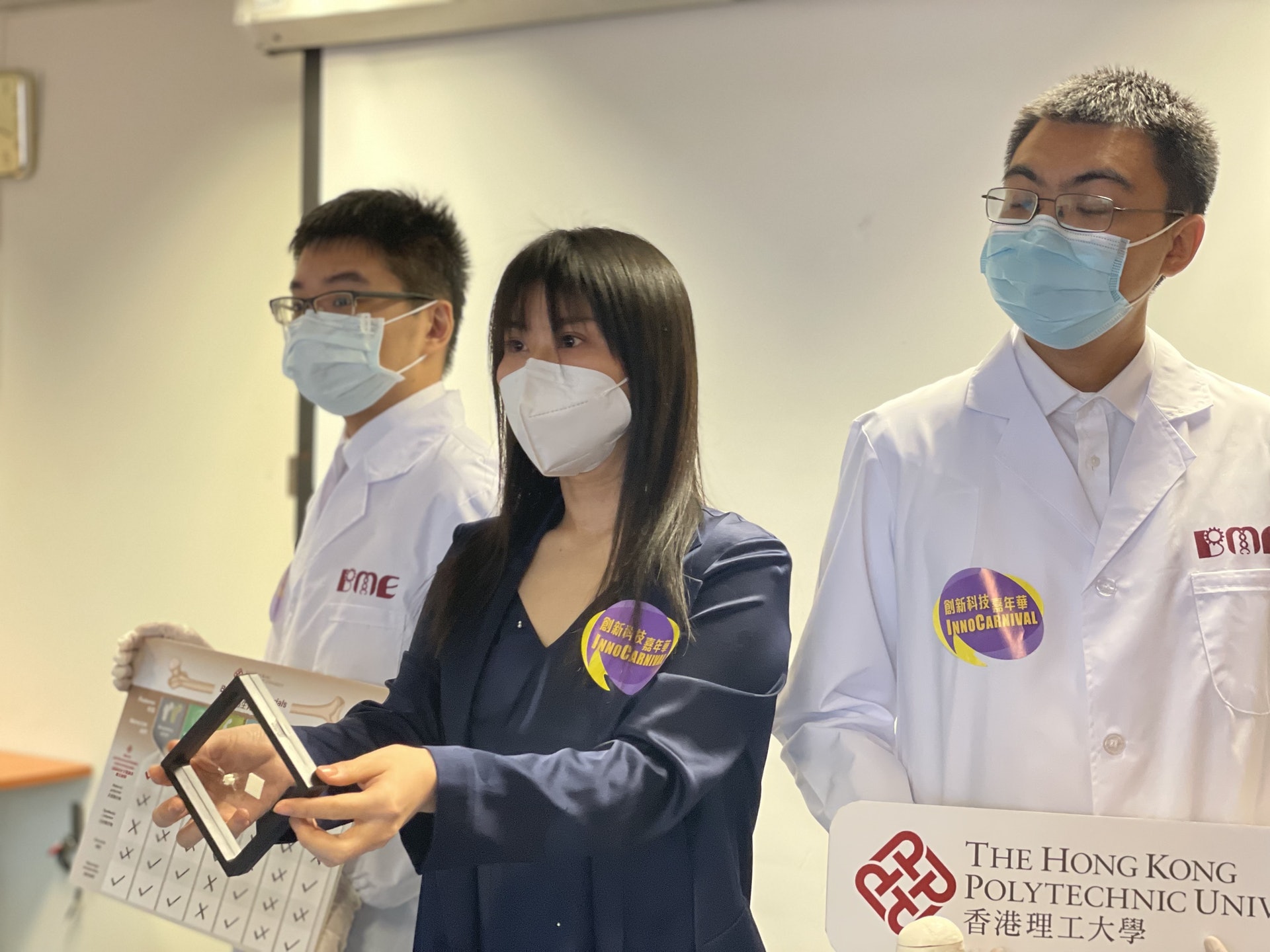 理工大學團隊將於由創新科技署舉辦的「創新科技嘉年華2021」中,展出最新的科研成果。團隊花四至五年時間,針對舊有人工植骨聚合物的缺點,研發出新的「光交聯納米複合仿生植骨材料」,新材料毋須如以往使用高溫定型,更能夠盛載生物活性分子,全面促進受傷的骨骼修復,復元速度比採用舊有物料快近1.5倍。